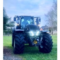 - Ein Valtra T 175 mit Forstkran.